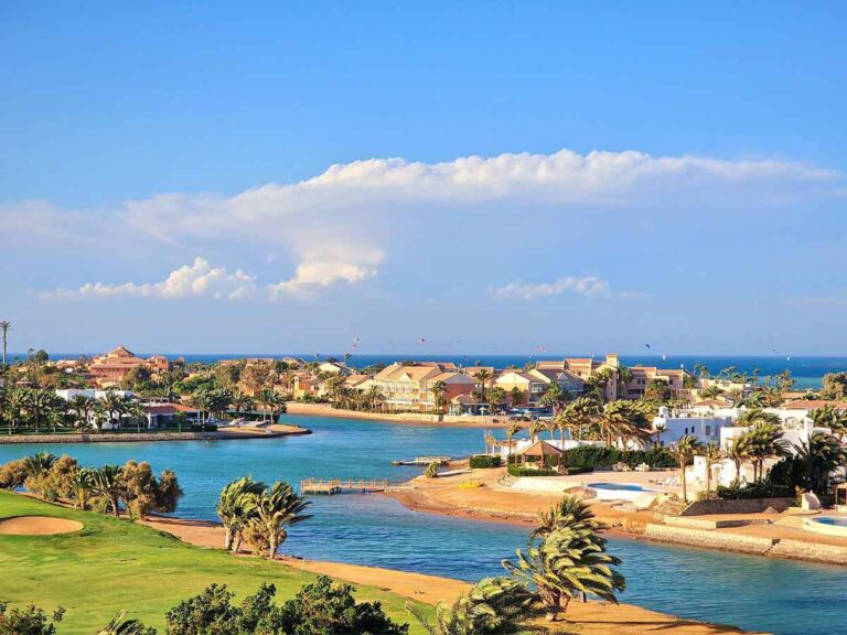 Эль-Гуна — это настоящий уголок рукотворного рая, созданный архитекторами и строителями посреди пустыни на побережье Красного моря. Этот курорт расположен примерно в 25 км к северу от Хургады и построен в едином стиле, сочетающем средиземноморские и восточные мотивы. Даже цветовая палитра зданий выдержана в теплых песочно-золотистых тонах.